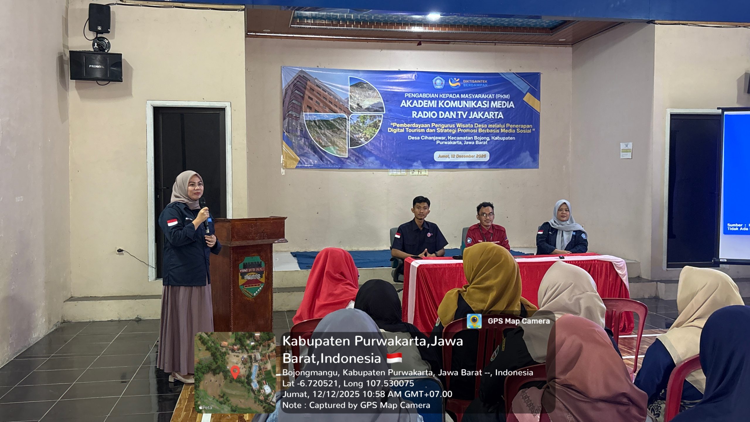 DepokNews–Purwakarta, 12 Desember 2025 — Universitas Gunadarma berkolaborasi dengan Akademi Komunikasi Media Radio dan TV (AKMRTV) Jakarta menyelenggarakan kegiatan Pengabdian kepada Masyarakat (Abdimas) PTA 2025/2026 di Desa Cihanjawar, Kabupaten Purwakarta, Jawa Barat. Kegiatan ini mengusung tema “Pemberdayaan Pengurus Wisata Desa melalui Penerapan Digital Tourism dan Strategi Promosi Berbasis Media Sosial” sebagai upaya mendorong penguatan ekonomi desa berbasis potensi lokal dan transformasi digital.