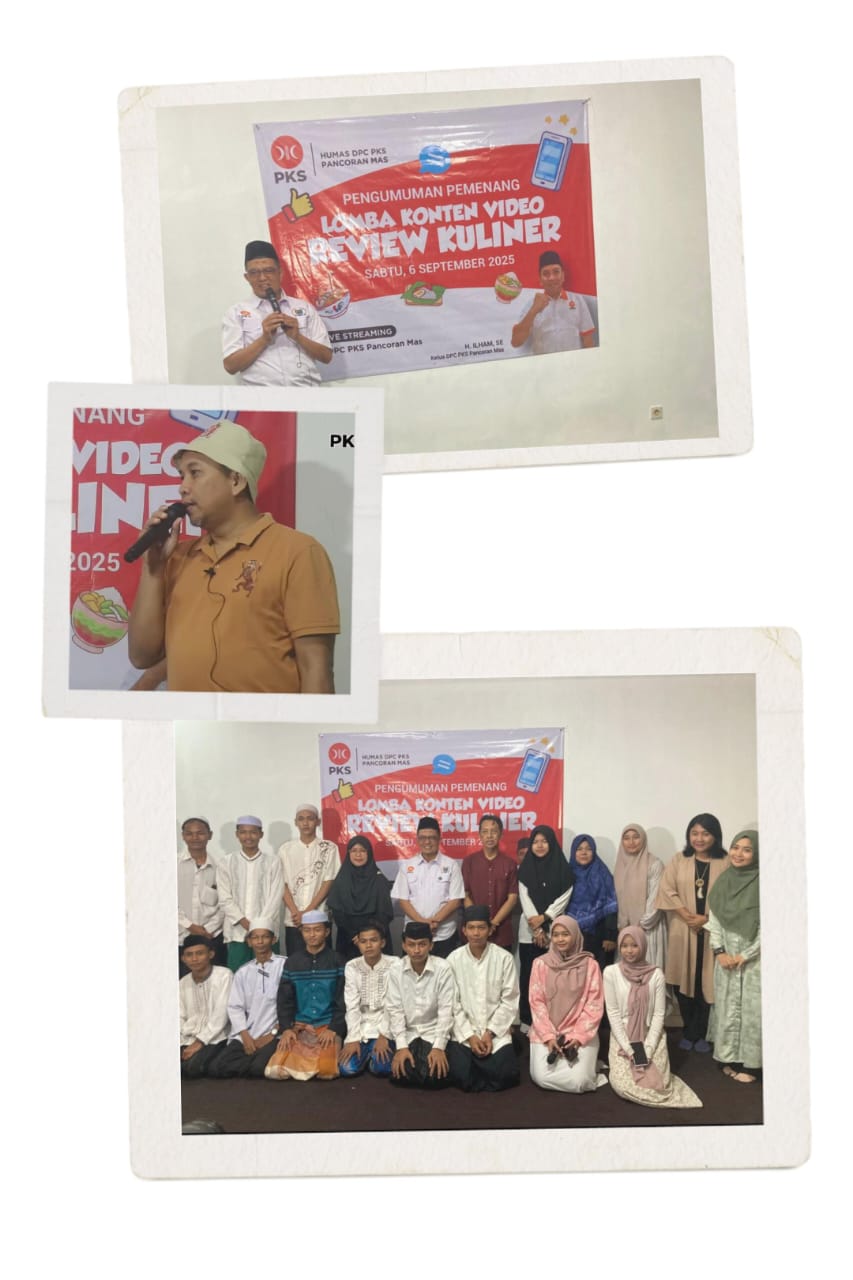Seperti diketahui, Humas DPC PKS Pancoran Mas menyelenggarakan kegiatan Lomba Konten Video Review Kuliner di Kota Depok dalam rangka merayakan HUT RI ke-80. Ada sekitar 40 peserta yang mereview berbagai jenis kuliner yang tersebar di beberapa wilayah, yaitu Pancoran Mas, Beji, Sawangan, Cimanggis, Sukmajaya, Cinere, Cipayung, Cilangkap, dan Tapos.