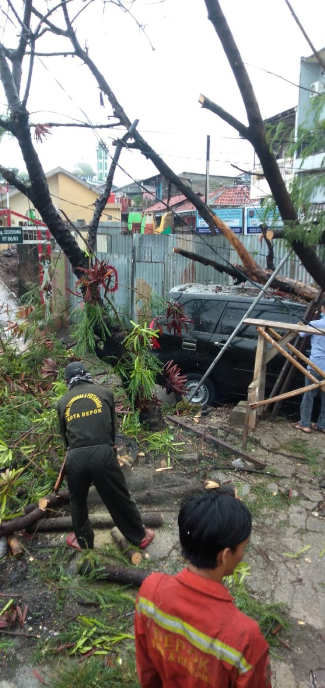DepokNews – Upaya mengantisipasi pohon tumbang akibat intensitas hujan yang tinggi dan cuaca buruk, Dinas Lingkungan Hidup dan Kebersihan (DLHK) Kota Depok telah menyiagakan Satuan Tugas (Satgas) Pohon. Termasuk dump truck untuk mengevakuasi pohon tumbang.