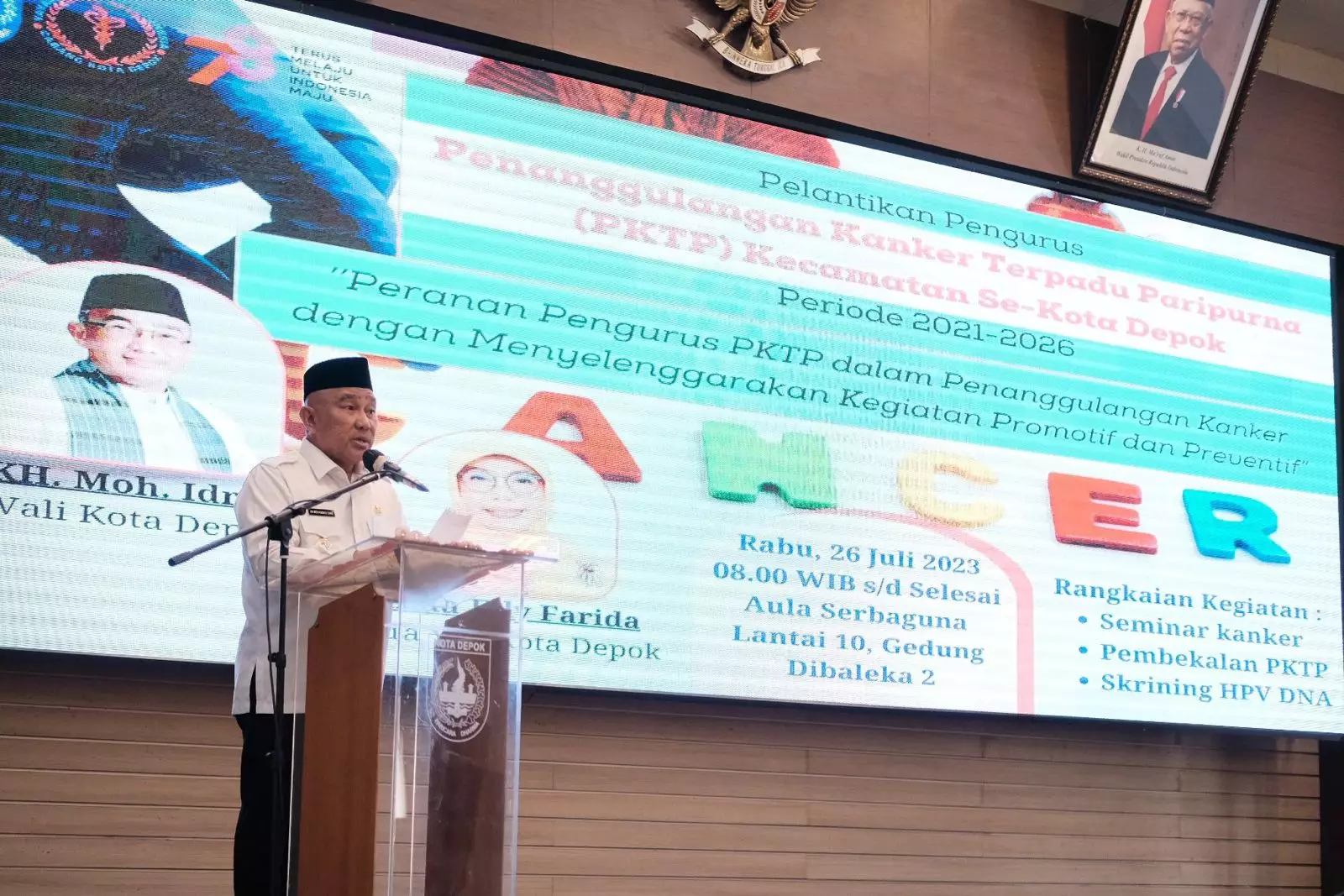 DepokNews – Wali Kota Depok, Mohammad Idris memberikan motivasi kepada pengurus Penanggulangan Kanker Terpadu Paripurna (PKTP) Kecamatan masa bakti 2021-2025 yang baru dilantik. Dirinya mengingatkan para pengurus untuk terus mendarmakan baktinya dalam upaya penanggulangan penyakit kanker.