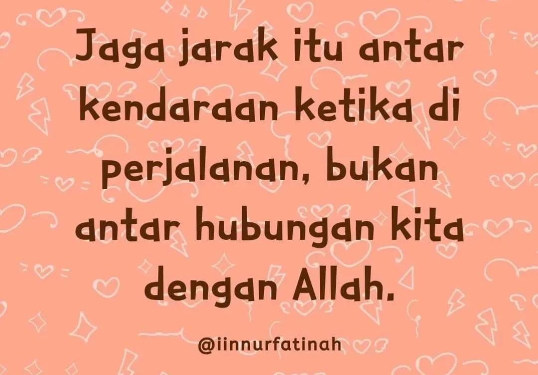 “Jaga jarak itu antar kendaraan ketika di perjalanan, bukan antar hubungan kita dengan Allah,” ungkap Iin Nur Fatinah @iinnurfatinah, Minggu (28/05).
