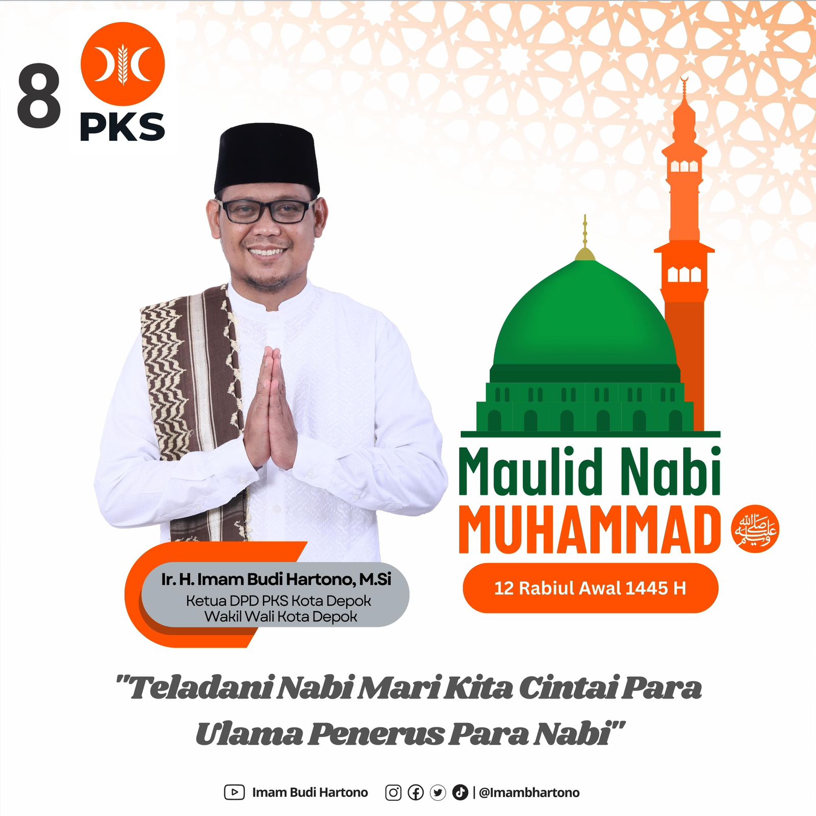 DepokNews–Ketua DPD PKS Depok, Imam Budi Hartono mengatakan, momen peringatan Maulid Nabi Muhammad SAW merupakan momen untuk menteladani Nabi Muhammad SAW sebagai salah satu wujud cinta Rosul dan cinta Ulama.