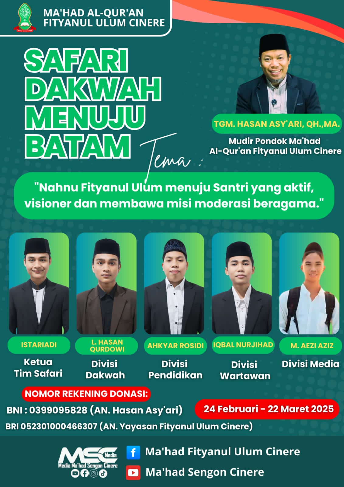 Para santri yang akan berangkat telah dipersiapkan secara khusus dengan pembekalan ilmu syariah, keterampilan komunikasi dakwah, serta pemahaman terhadap kondisi sosial masyarakat setempat. Mereka dijadwalkan untuk mengunjungi beberapa masjid, pesantren, dan komunitas Muslim di Batam guna mengisi kajian Islam, ceramah keagamaan, serta program sosial lainnya.