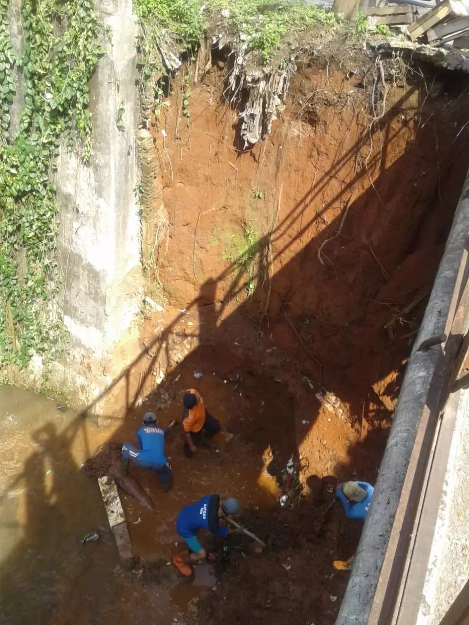 Saat ini penanganan dilakukan dengan pengangkatan material longsor dan akan dilanjut dengan pembuatan turap.
